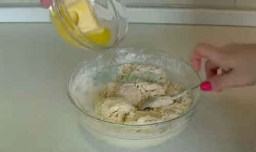 Сформуйте кулю, перекладіть в миску, накрийте плівкою і відправте масу «підходити». На цей процес піде приблизно 1,5 години. Витратьте цей час на приготування начинки.