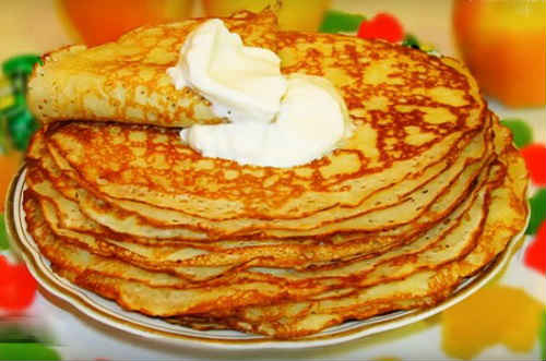 Відео-рецепт млинців на топленому молоці з дріжджами