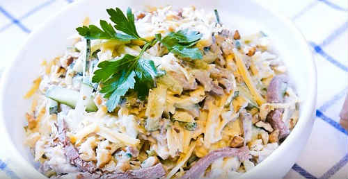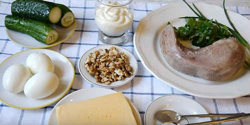 Салат з свинячого мови зі свіжими огірками