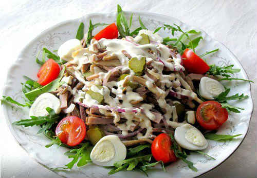 Салат з мови без майонезу з руколою