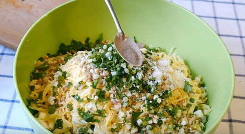 Сир натріть великої стружкою.