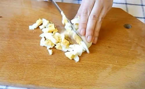 Поріжте кубиками яйця середнього розміру.