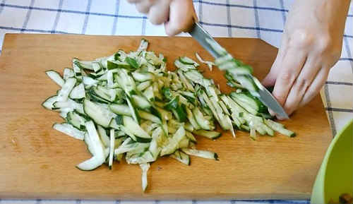 Аналогічно покришіть свіжий огірочок.
