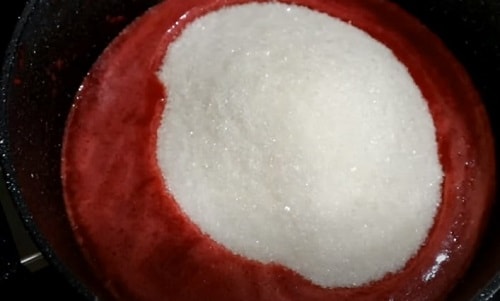 Протріть крізь сито, макуха викиньте. Обов’язково зважте отриману масу. Виходячи з ваги, визначте кількість цукру.