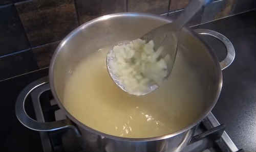 Дивіться на фото, немає необхідності перетирати бульби в пюре. Розтирайте не занадто дрібно.