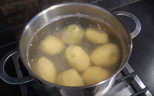 Одночасно почистіть картоплю, не нарізаючи опустіть його замість риби в каструлю. Ви можете нарізати картоплю великим кубиком, але тоді справжнього смаку юшки по-фінськи ви не дізнаєтеся. Варіть до готовності.