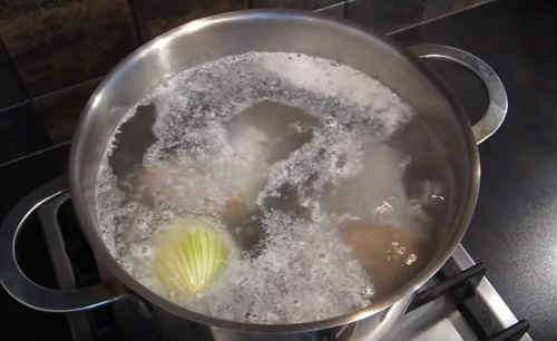 Дочекайтеся закипання бульйону, зменшіть силу вогню до мінімуму, варіть 15-20 хвилин. Якщо з’явиться піна – зніміть шумівкою.