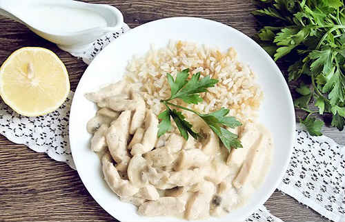 Куряче фрікасе — рецепт з грибами (печерицями)