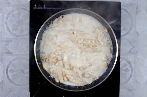 Зменшіть потужність вогню до мінімуму, прикрийте сковороду кришкою. Готуйте ще 15 хвилин. Соус загусне.