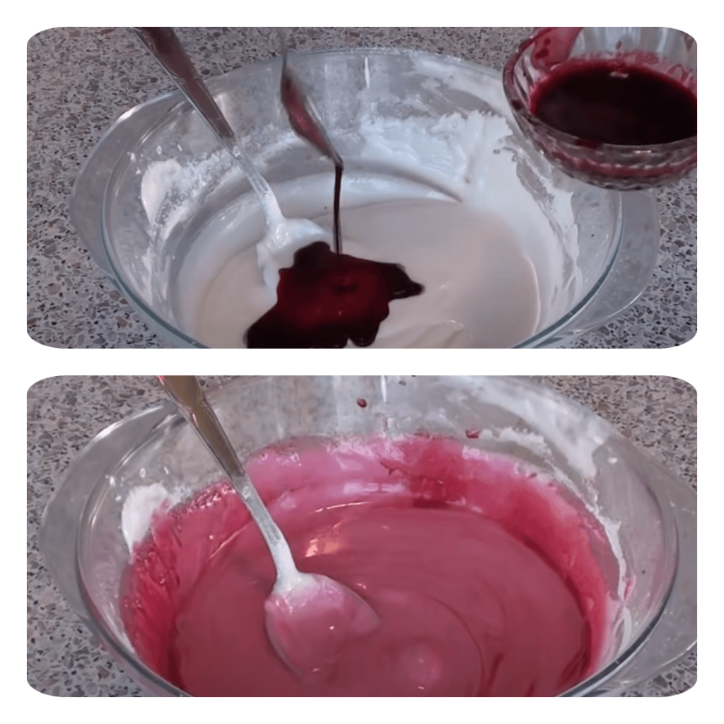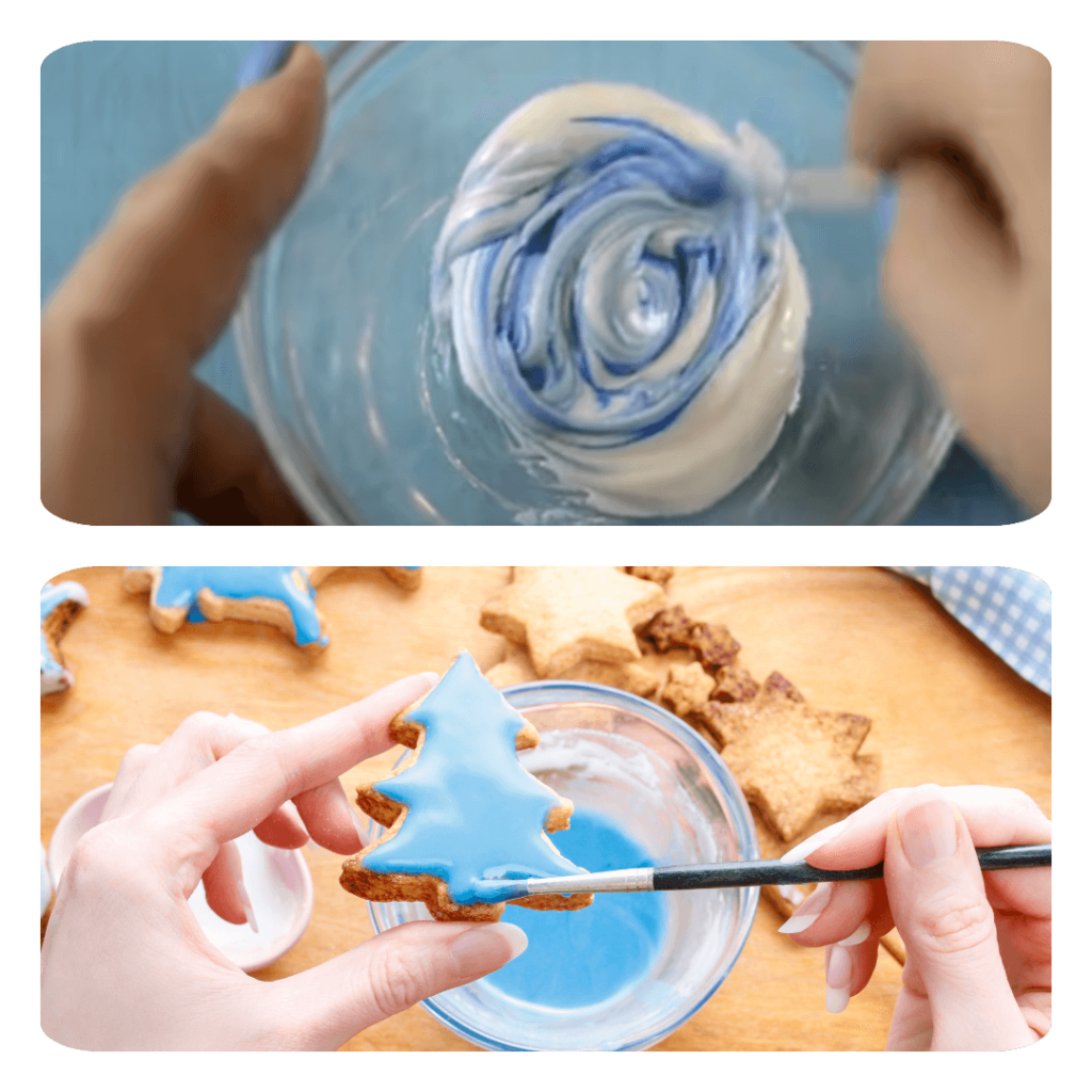 У ємність потрібно висипати просіяну пудру. Видавити лимонний сік і додати його до пудри. Обережно перемішати до освіти однорідної густої маси. У готову глазур для малювання додати барвники.