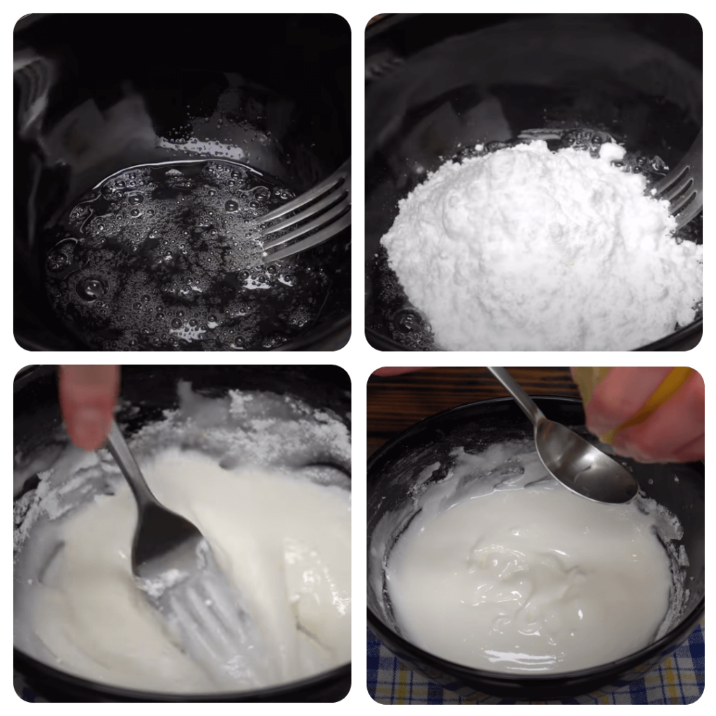 Для приготування необхідно збити яєчний білок і поступово додавати цукрову пудру. Її краще просіяти через сито, щоб не з’явилося грудочок. Маса повинна збільшитися в обсязі в 2-3 рази.