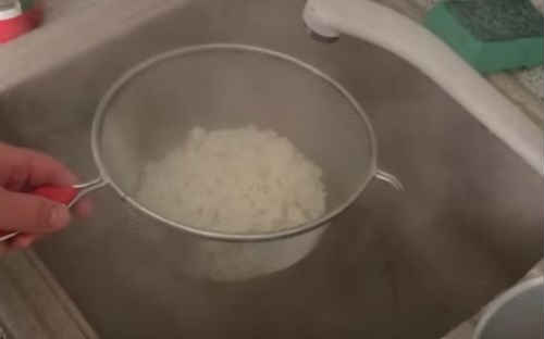 - Промийте рис відваріть протягом 5-7 хвилин, остудіть.