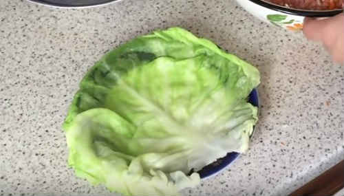 Самі верхні листки завжди великі. Тут визначитеся самі, поділити їх на дві частини, або просто покласти більше фаршу.