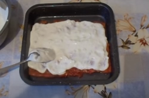- Викладіть сметану, розрівняйте, покривши всю рибу.