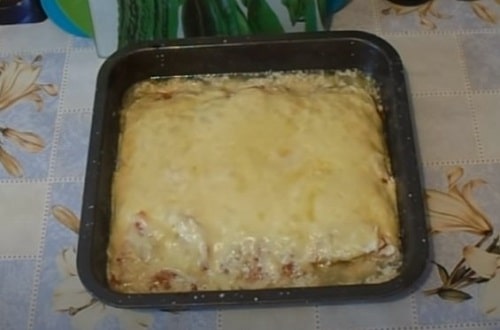 - Час приготування 30 хвилин при температурі 180 про С. після дістаньте, посипати залишками сиру. Поверніть на подальше запікання протягом ще 5-7 хвилин.