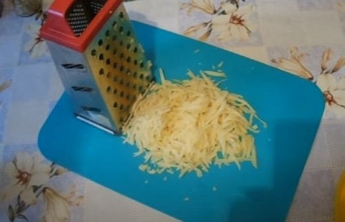 - Підготуйте продукти. Крупно натріть сир, цибулю поріжте будь нарізкою.