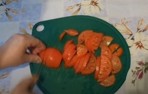 Наріжте помідори півколами.