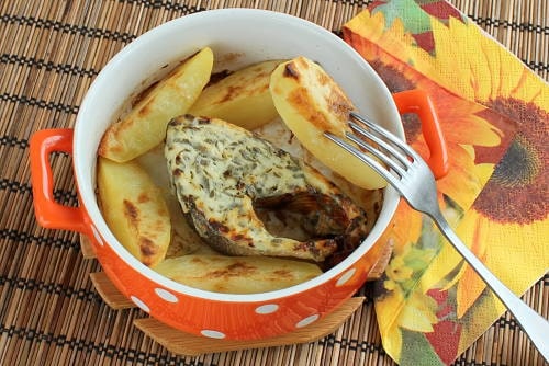 Горбуша в сирно-сметанному соусі з картоплею