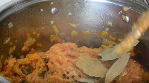 За цей час додати лаврушку і перець.