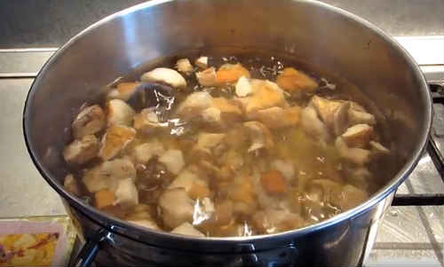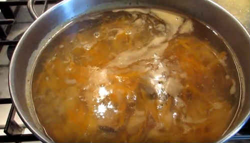 Промийте заготівлю, закиньте в окріп. Після закипання зніміть з’явилася піну. Варіть приблизно годину.