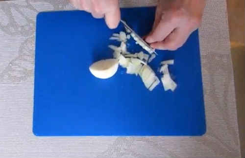 Покришіть дрібним кубиком цибулю, крупно потріть моркву.