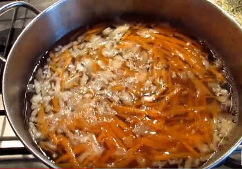 Після годинної варіння покладіть у бульйон нарізку овочів – морква і цибуля.