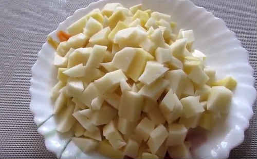 Паралельно почистіть бульби картоплі, наріжте кубиками (соломкою).