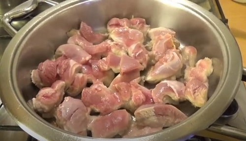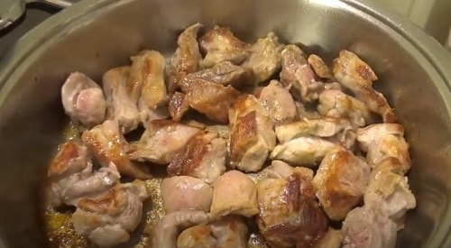 Спочатку виділиться багато соку, потім він випарується, шматочки м'яса красиво підсмажаться.