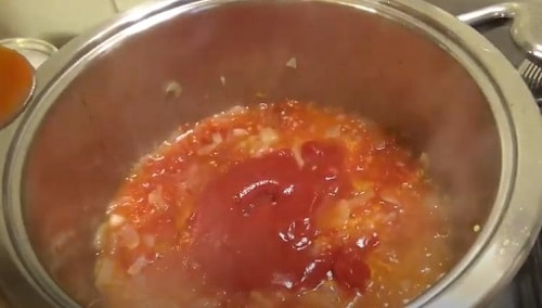 Відразу розбавте густий томатний соус бульйоном або водою. А при, скільки вважаєте за потрібне. Спробуйте на смак, подкорректируйте, якщо солі замало.