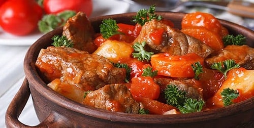 Другий популярний варіант підливи для індички – томатний. Блюдо виходить остреньким, не менше смачним. Рецепт підійде для дітей, тому в дитячому саду гуляш готують саме так.