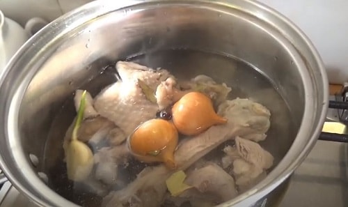 Якщо готуєте гуляш зі стегна індички, зніміть з кісточки м'ясо, шкірку. Зваріть з них бульйон. Він стане в нагоді для приготування гуляшу. Те, що залишиться, заморозьте, при нагоді готовий бульйон вас дуже виручить. Варіть приблизно з півгодини, поклавши в каструлю цибулю, можна додати моркву.