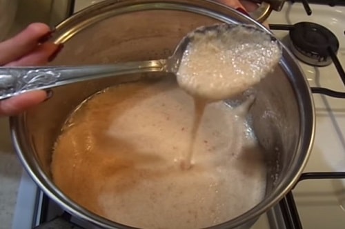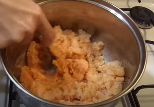 Прогрівайте на помірному вогні, поки маса не закипить. Проваріть майбутню ікру не більше 2 хвилин. Крупинки манки не повинні розчинитися, вони залишаться великими.