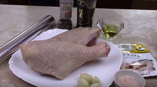 Обполосніть гомілки птиці, трохи промокніть паперовою серветкою.