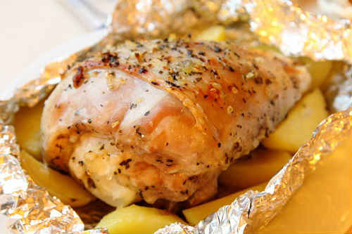 Соковита індичка, запечена у фользі з картоплею