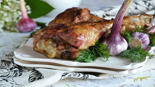 Для приготування годяться будь-які деталі індички – гомілки, крила, стегна. М’ясо гарантовано виходить неймовірно соковитим і м’яким.