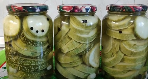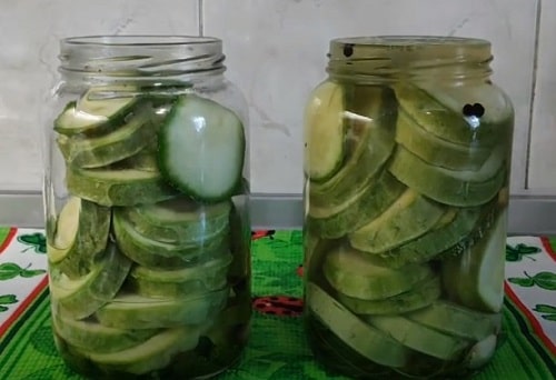 Що важливо, заготівля робиться без стерилізації, а це зберігає купу часу. Ще один безсумнівний плюс цього рецепта – консервувати допустимо навіть перестиглі кабачки з огрубілою шкірою. На смак заготовки це ніяк не відбивається.
