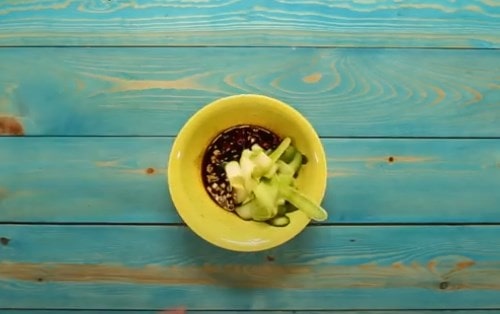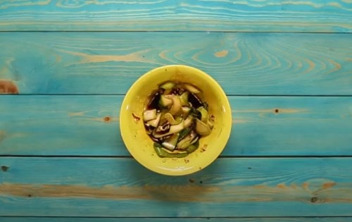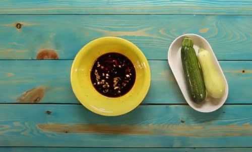 Відео — рецепт швидкої закуски з маринованих кабачків з медом і соєвим соусом