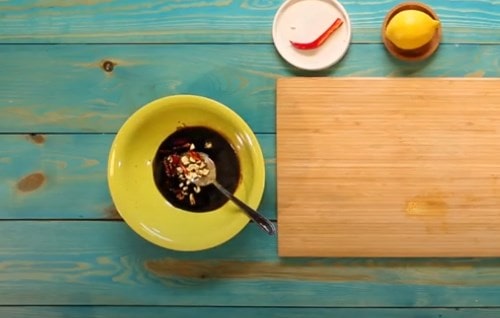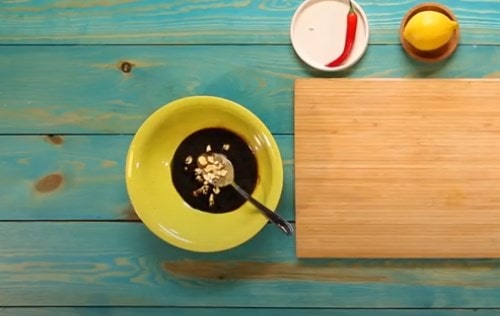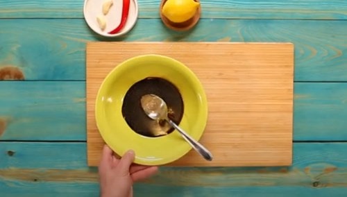 Зробіть маринад, змішавши в плошці оцет з медом. Підсоліть і трохи поперчіть.