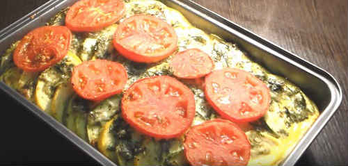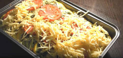 Відео-рецепт запіканки з кабачків з сиром і помідорами