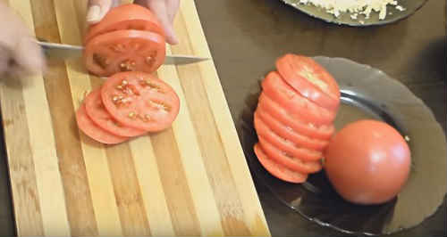Поріжте помідори кружечками близько ½ см. товщиною.