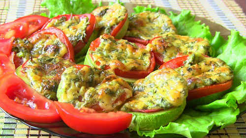 Кабачки, запечені в духовці з помідорами і сиром в сметанному соусі