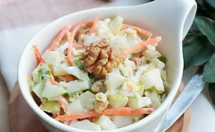 Якщо вам набридли традиційні салати, зверніть увагу на наступний рецепт. Готується цей салат дуже просто, ще й має низьку калорійність, всього 35 ккал на 100 грам.