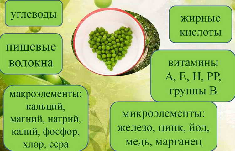 Також такий продукт, як горох, має цінний хімічний склад.