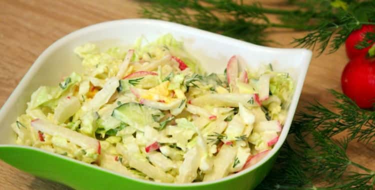 Капусту і селеру тонко порізати. Редис нарізати соломкою. Петрушку і гострий червоний перець подрібнити. У салатник скласти підготовлені продукти, додати кукурудзу, сметану, перемішати. Салат добре подавати прозорих порційних салатниках.