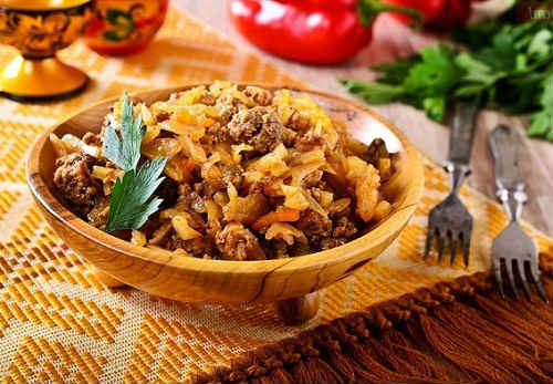 Тушковану капусту з м’ясом знають і люблять практично у всьому світі. Особливо страви поважають в країнах Східної Європи, Прибалтики та Білорусі. У кухнях цих народів страв зі свіжої і квашеної капусти присвячені цілі розділи. Наші господині теж упевнені, що якщо в будинку є шматочок м’яса і вилок капусти – сім’я голодною не залишиться.