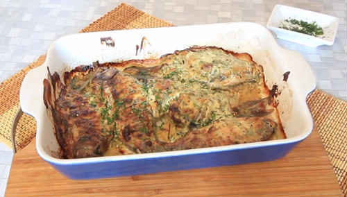 Карась з картоплею, сметаною і цибулею