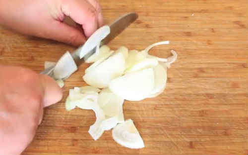 Покришіть цибулину півкільцями. Для цибульного подушки, беріть велику головку, або навіть парочку, якщо вони маленькі, тут все залежить від ваших уподобань.