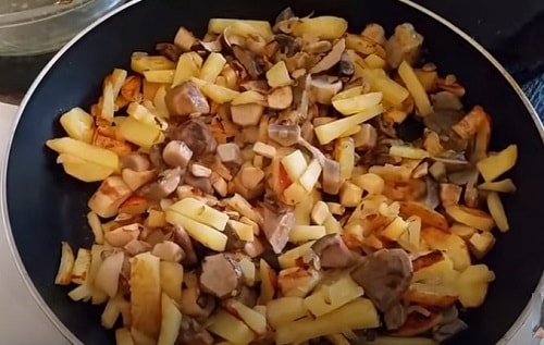 Надішліть на сковороду з картоплею смажені гриби.