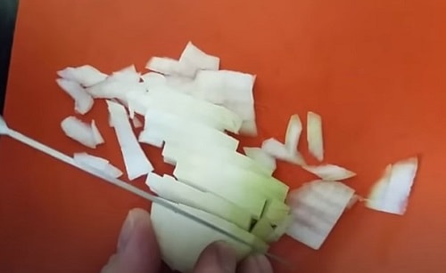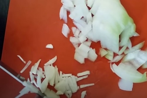 - Настругати цибулину дрібними кубиками.