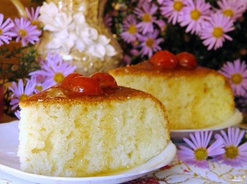 - Налийте в форму, промазану маслом. Випікайте десерт протягом 45 хвилин, розігрів духову шафу до 180 о С.